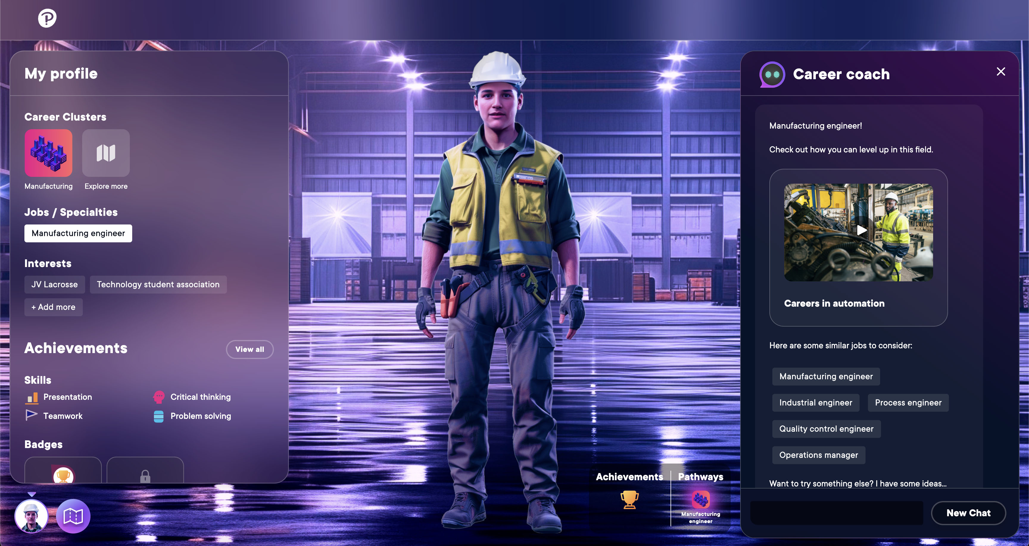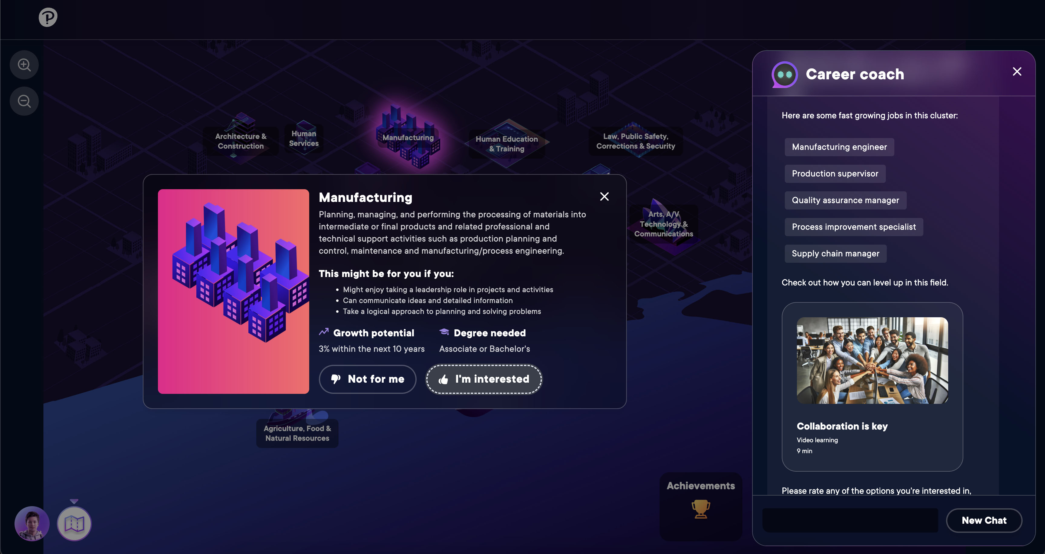 This was a larger scale team prototype to imagine a specific early career interaction. The prototype itself was created using a NodeJS backend with a ReactJS front end and an API connection to Chat GPT. The chatbot was contextually aware and could manipulate the page on behalf of the user, allowing for the interactions to be fluid and personal as the user progressed through the interaction. I provided coding and information architecture.