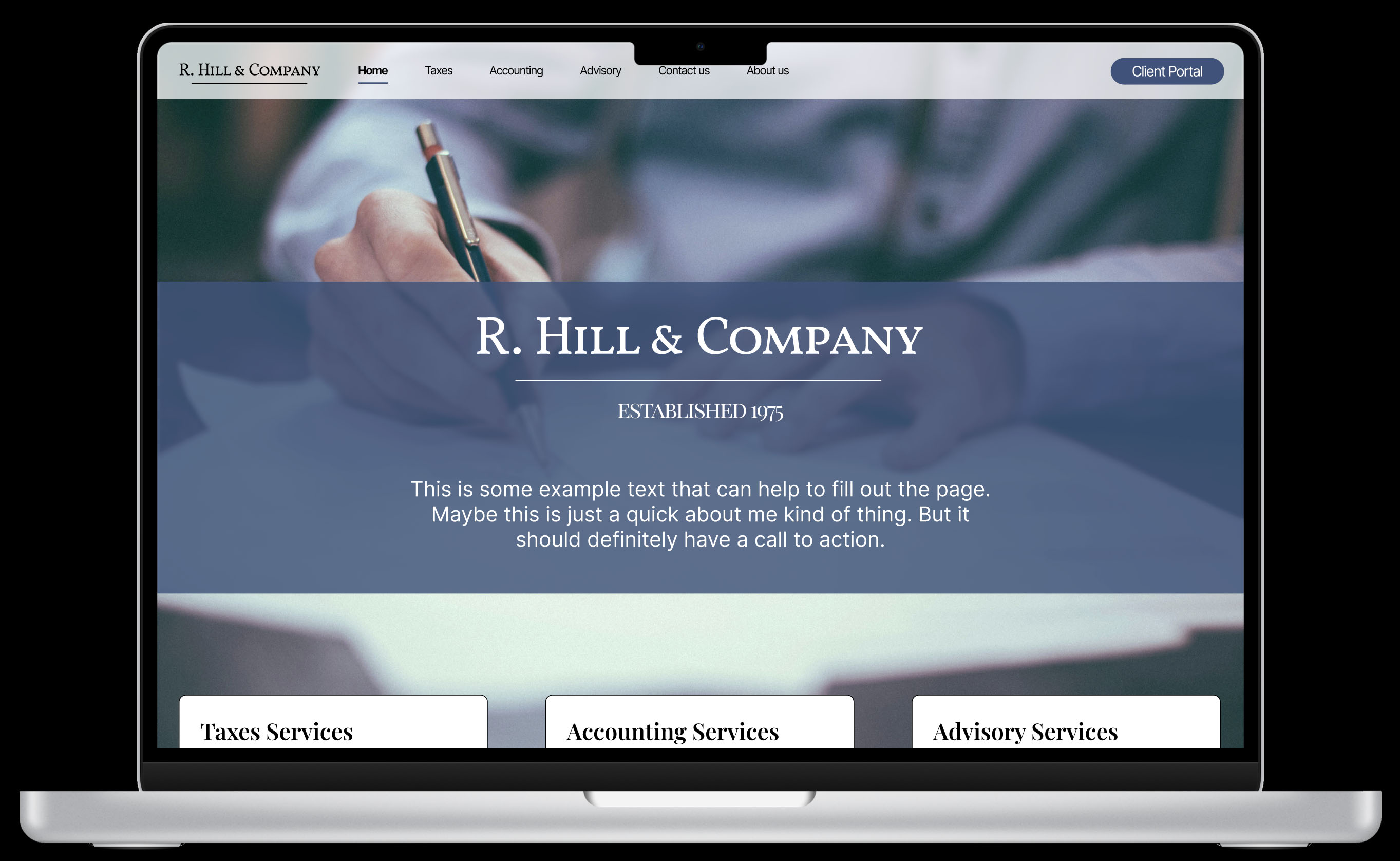 This is an in progress custom website design task for a local small business. I was looking to develop a logo and visual design to communicate trust and stability, without over indexing on known visual design patterns from accountants and law firms. I worked directly with the client to iterate on the concept and create something that would work for them.